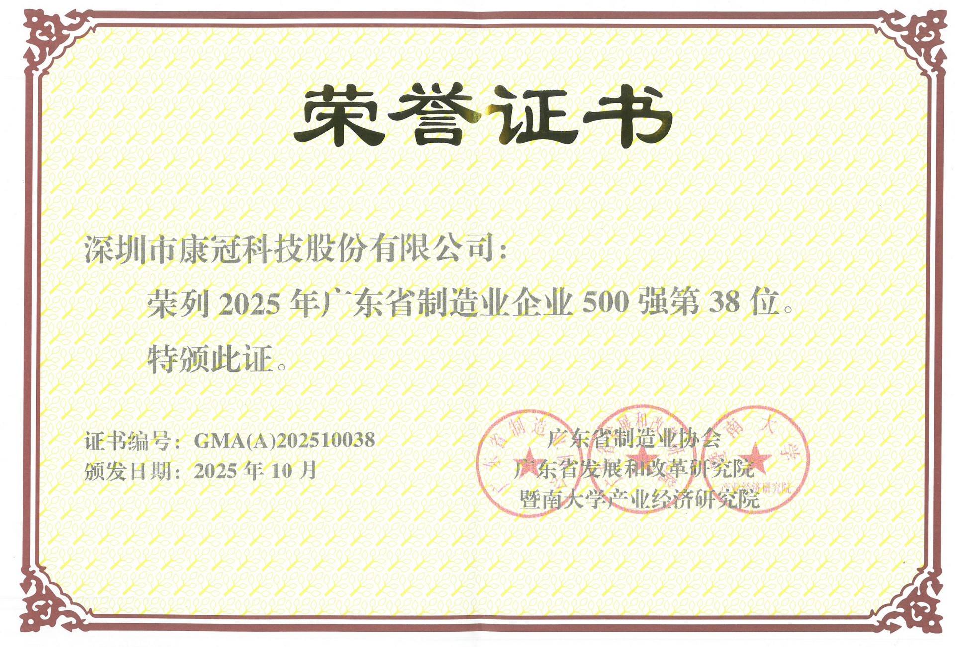 10月29日,2025年广东省制造业500强企业峰会近日在东莞举行,会上正式发布了《2025年广东省制造业500强企业研究报告》。深圳市康冠科技股份有限公司位列榜单第38位,彰显了在广东制造业领域的坚实地位和稳定发展动能。(记者/ 郑新君)