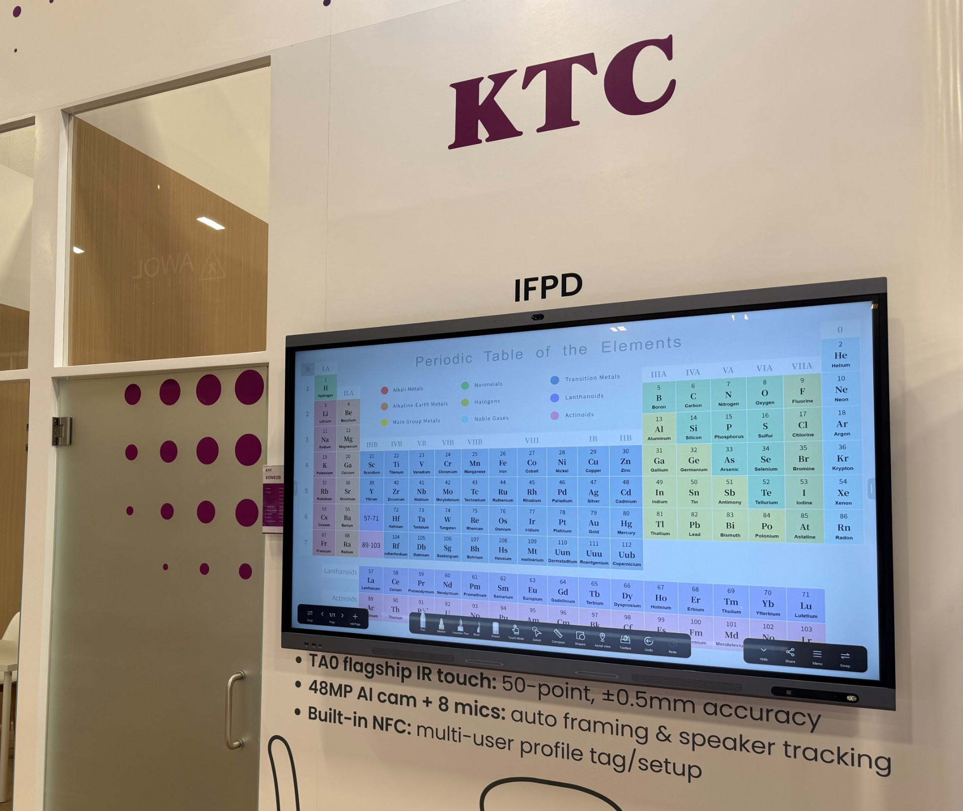 展出的W82B智能交互平板搭载了康冠科技自主研发的ALLin OS操作系统,主打智能操作与便捷体验;独创AI工具箱,集成全局AI助手,支持一键调用AI图文生成、智能翻译、AI朗读等功能,并与书写软件深度协同,提升大屏办公与协作效率。