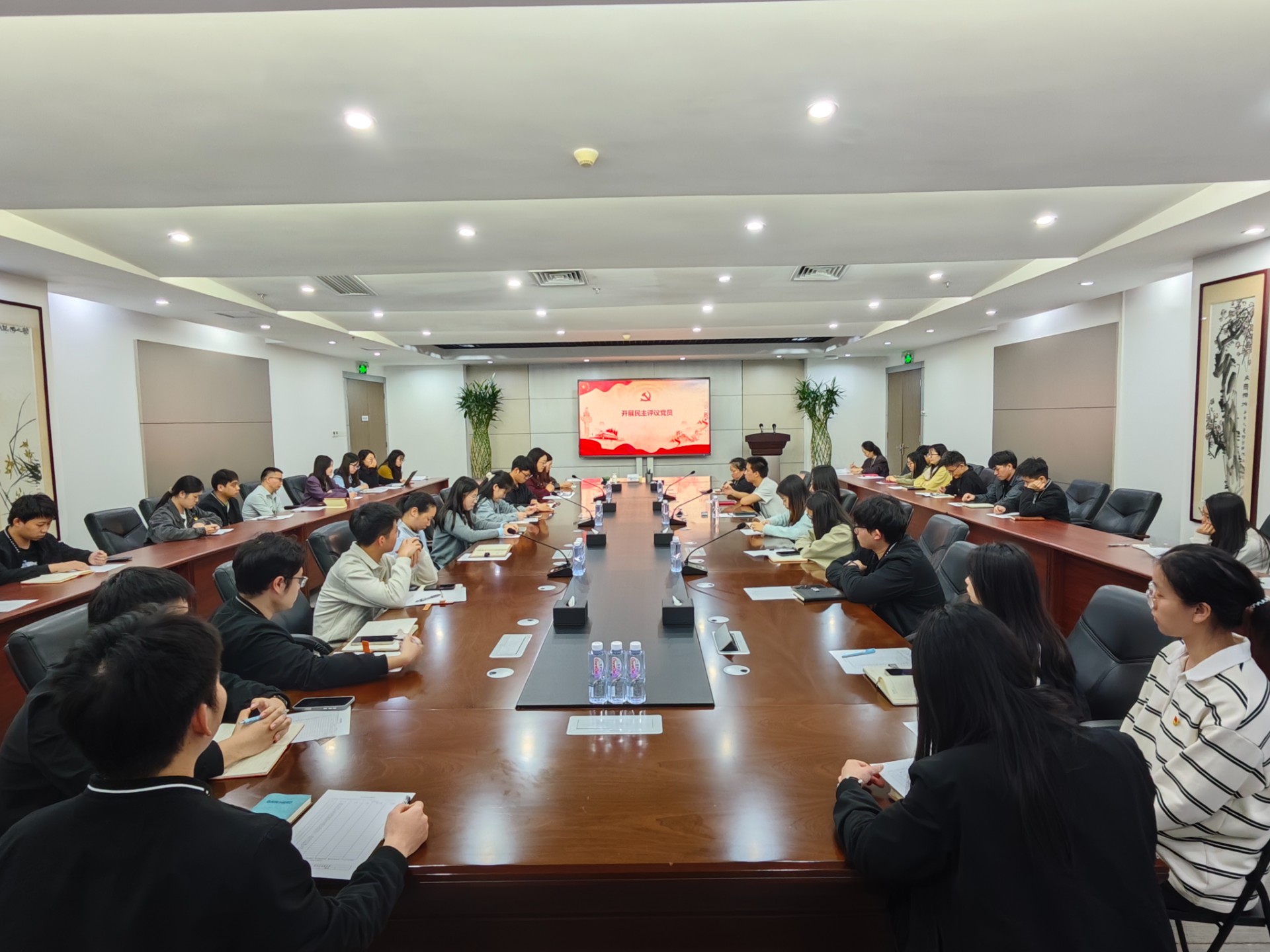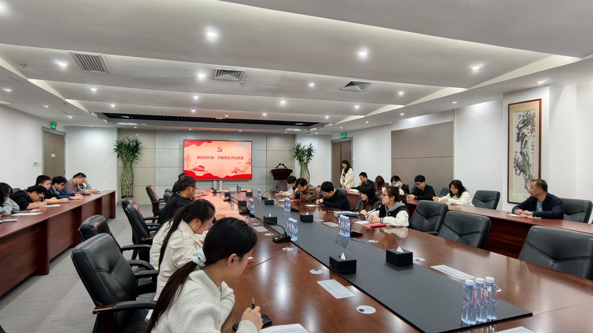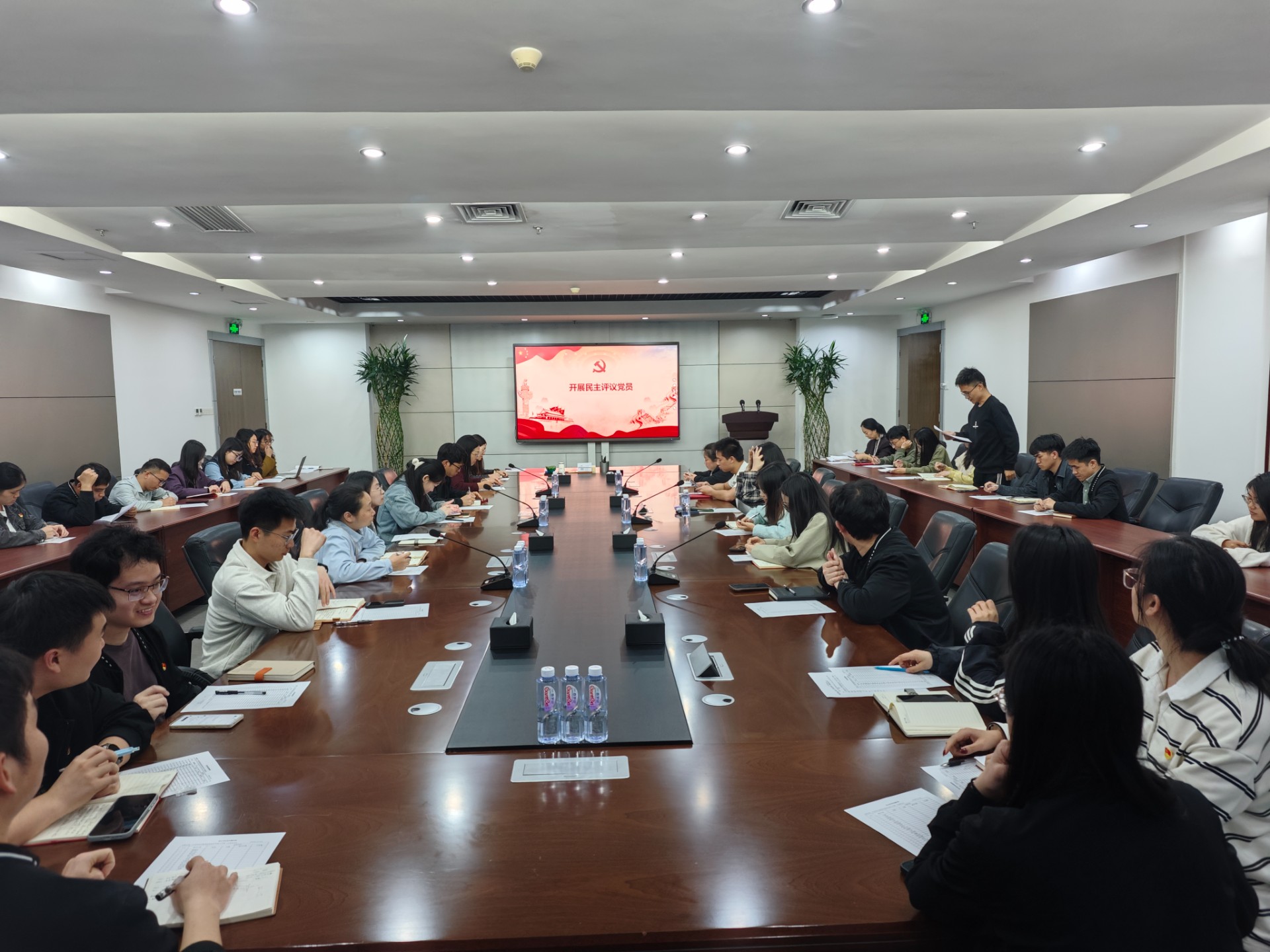 紧接着,各党支部分别召开了组织生活会并开展了民主评议党员。会上,全体党员本着对组织、对同志、对事业高度负责的态度,严肃认真地开展了批评与自我批评。自我批评环节,大家直面问题,深入查摆自身在思想、学习、工作、能力、作风等方面存在的差距和不足。相互批评环节,同志们坦诚相见、实事求是,提出了中肯的批评意见,达到了“团结—批评—团结”的目的。之后,各支部按照个人自评、党员互评、民主测评的程序,对支部全体党员进行了民主评议。